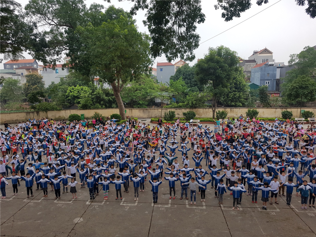 Thầy và trò trường tiểu học Đình Xuyên đã thực hiện tập thể dục dưới nền nhạc. Qua nhiều buổi tập thì thấy các em rất hứng thú và vui thích.